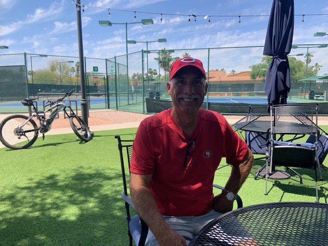Ken and his wife, Sheri, are from Petaluma, in Northern California. They purchased their home in 2021, are Snow Birds, and enjoy the winters at PebbleCreek. Ken is not new to the Tennis Club, and joined two years ago, took some time away to focus on selling their home in the Bay Area, and remodeling their new residence. Ken shared with me, he captained a 4.0 USTA/Volvo League.