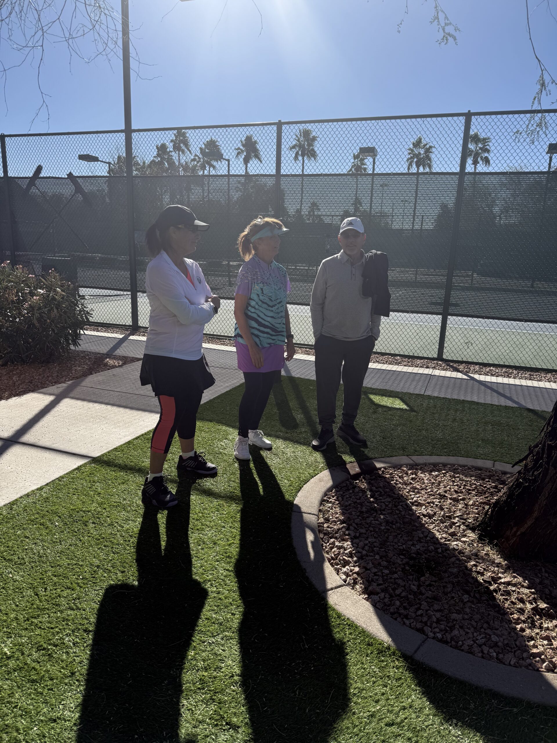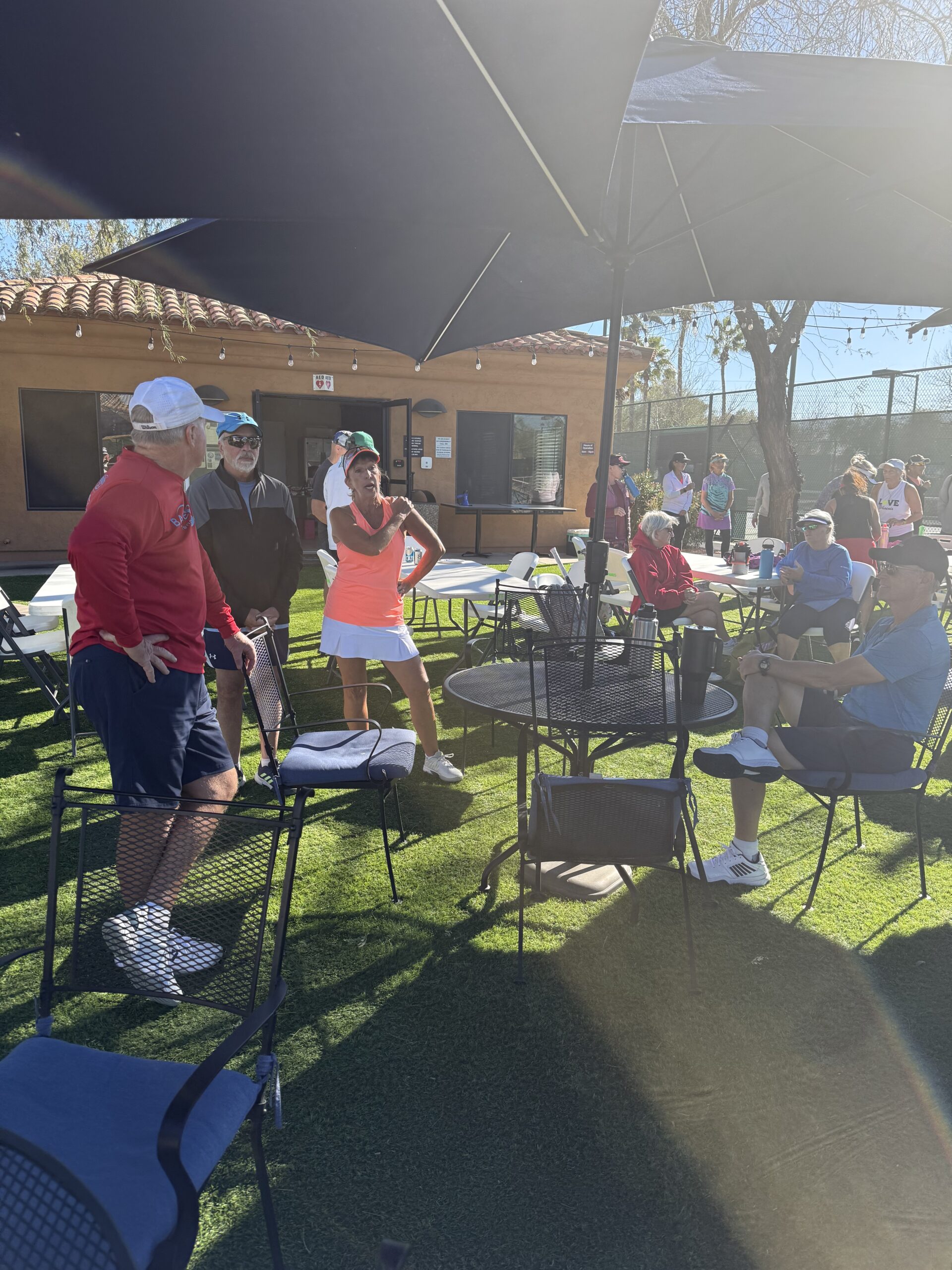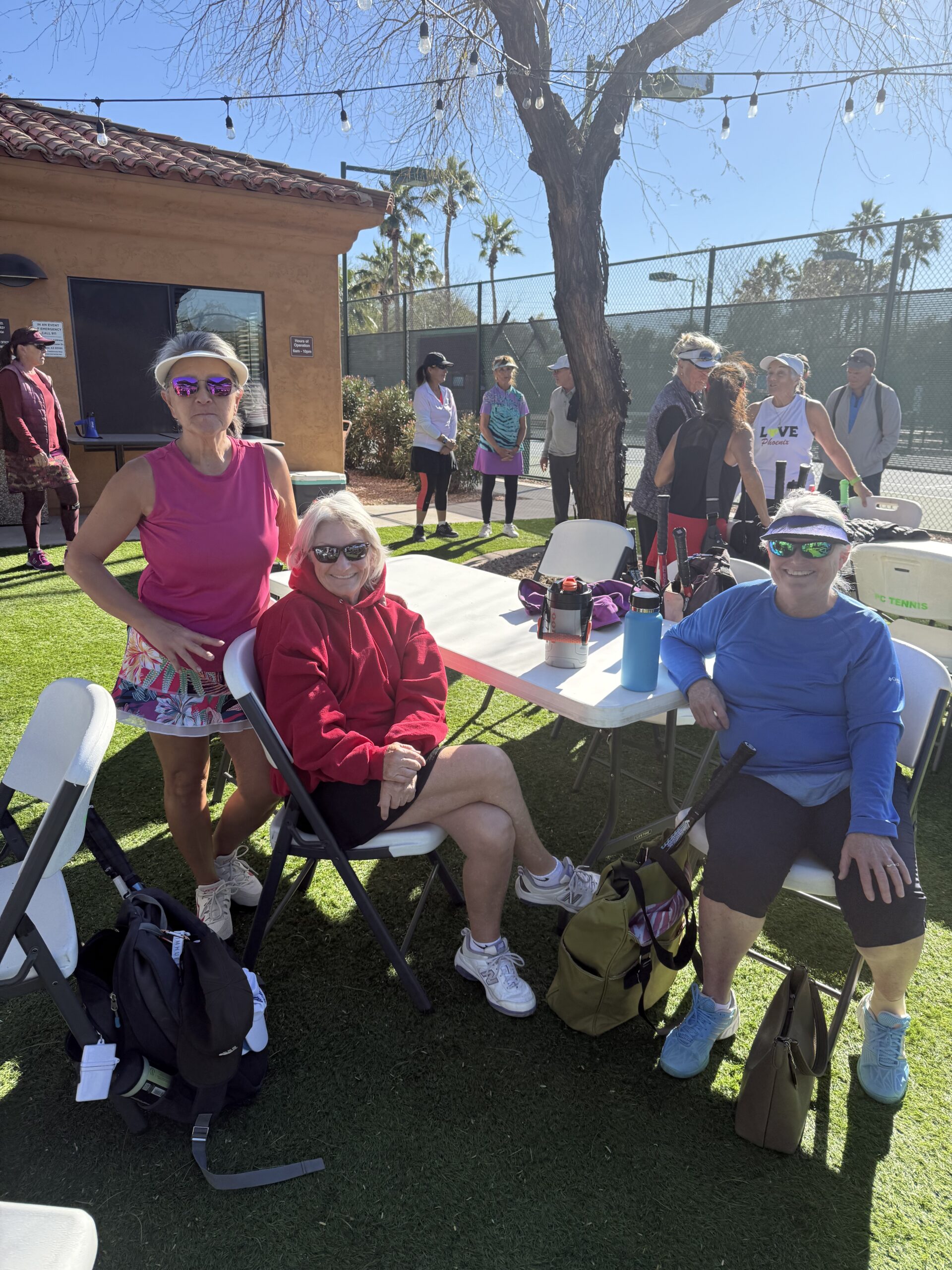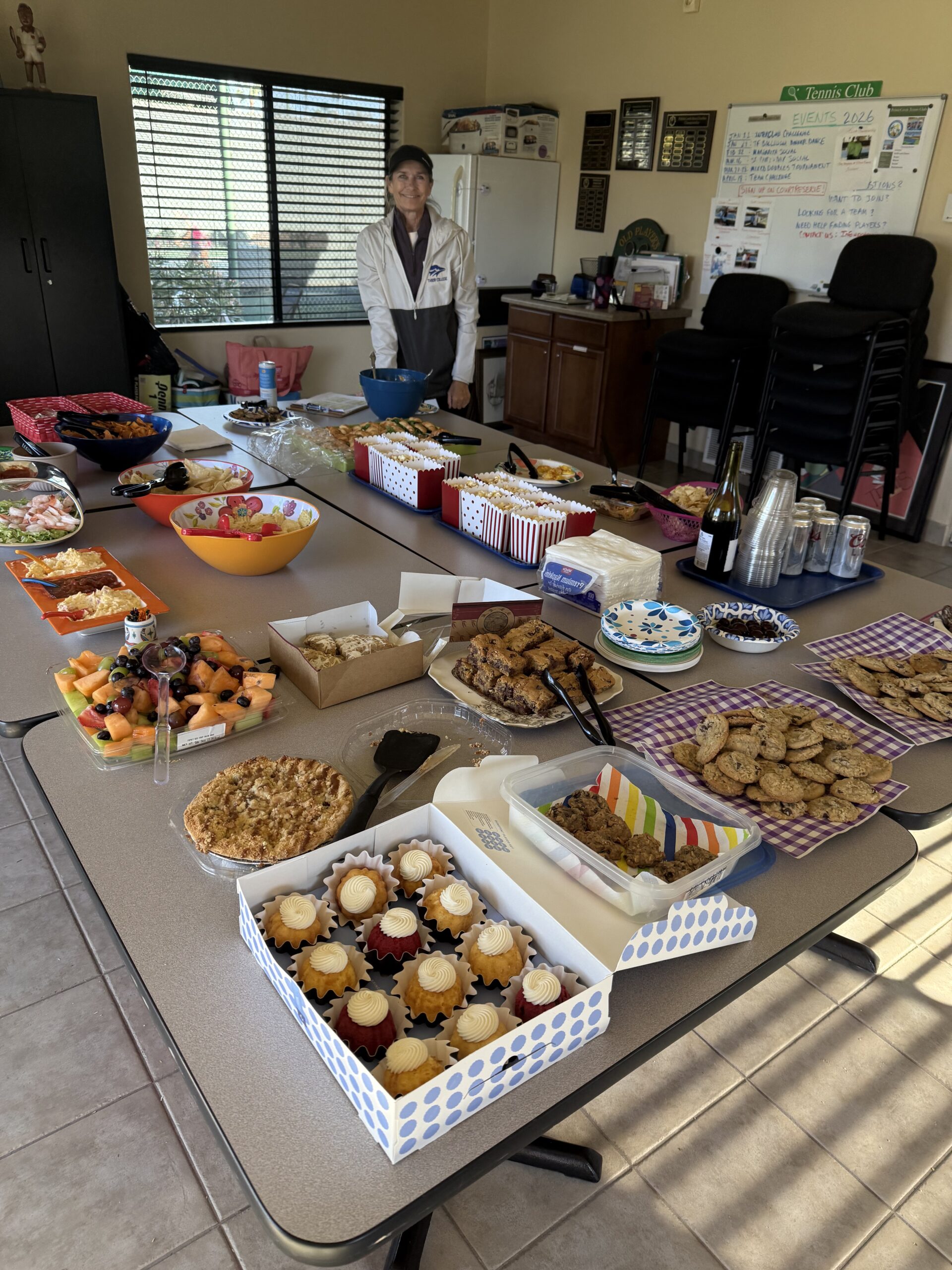 Fun day playing tennis with our compatriots at Sun City West.  Sheri Wallace organized five rounds of play with women’s doubles, men’s doubles, and mixed doubles. PebbleCreek players brought several desserts, drinks, and other snacks. A special thank you to Sheri and Rod Wallace for organizing the fun day.