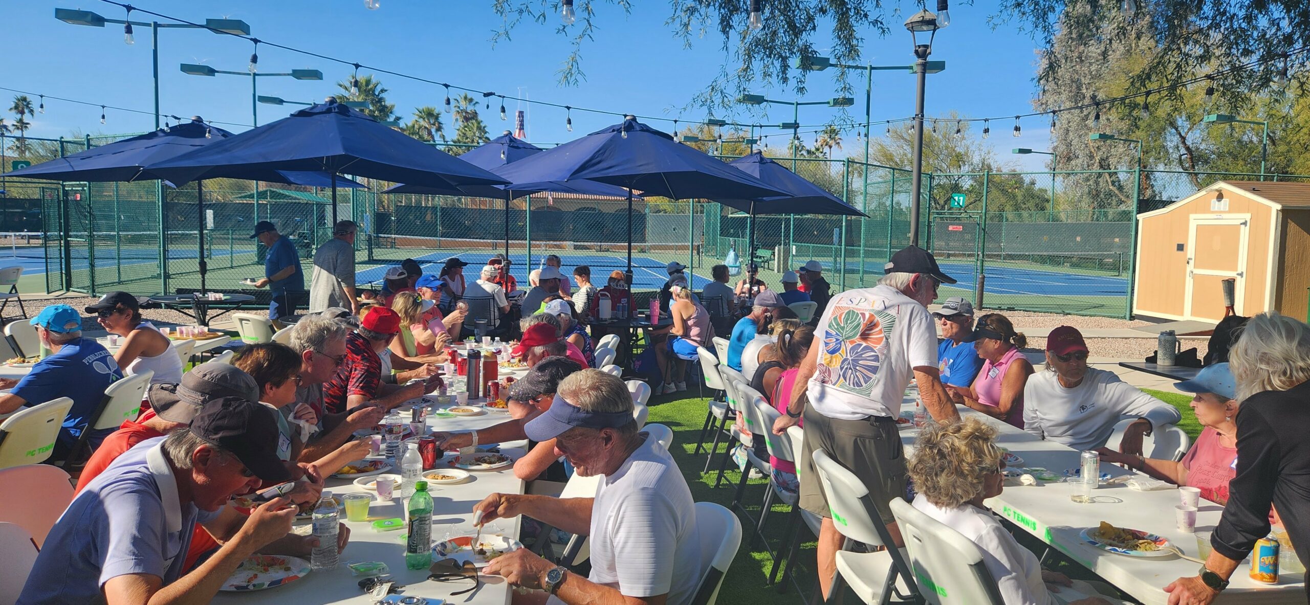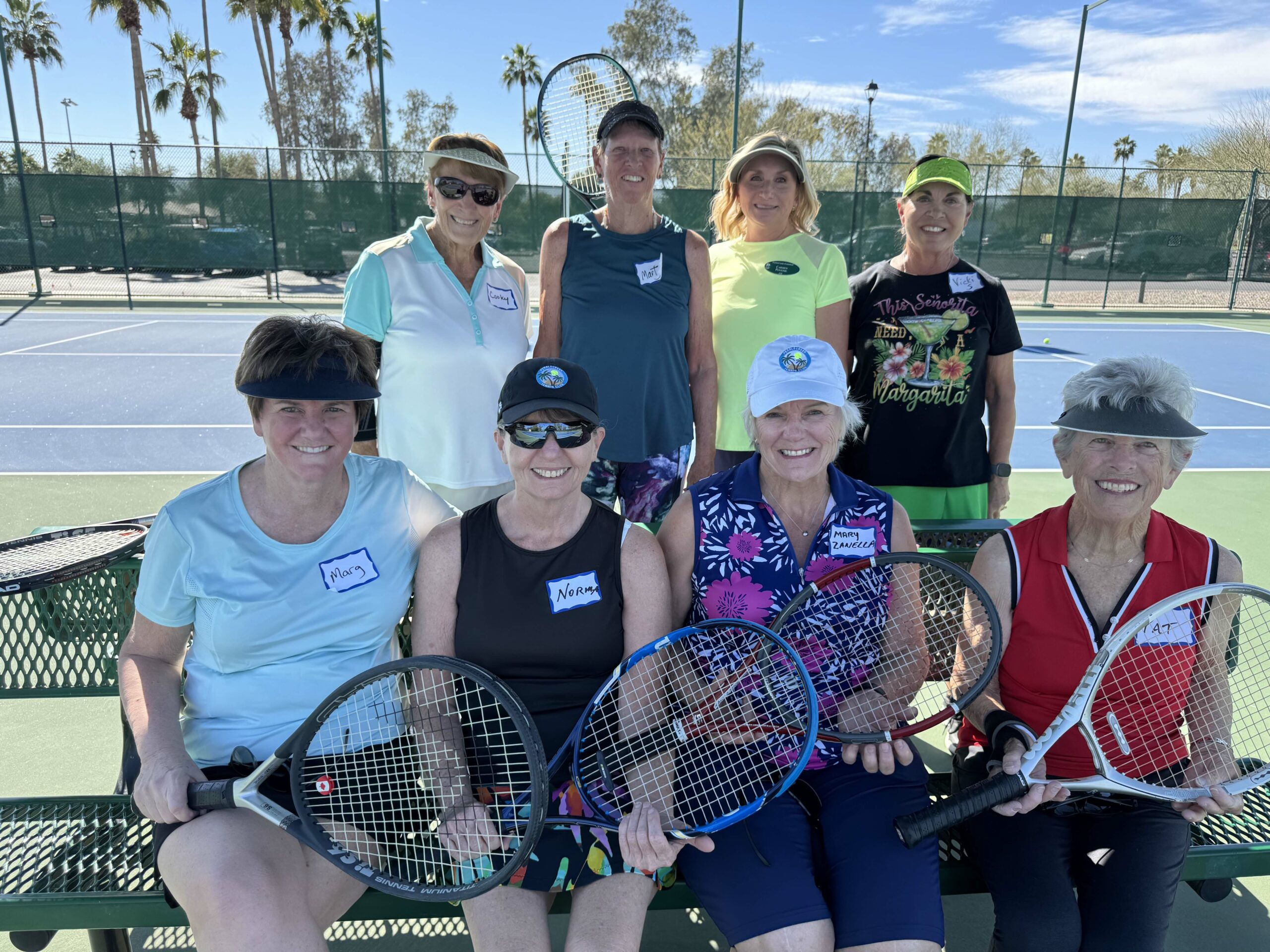 A fun social was held on “National Margarita Day” and was filled with fun competitive tennis, good food, drinks and Jimmy Buffett music. There were several groups of tennis players competing to win hats, tennis balls, and more.